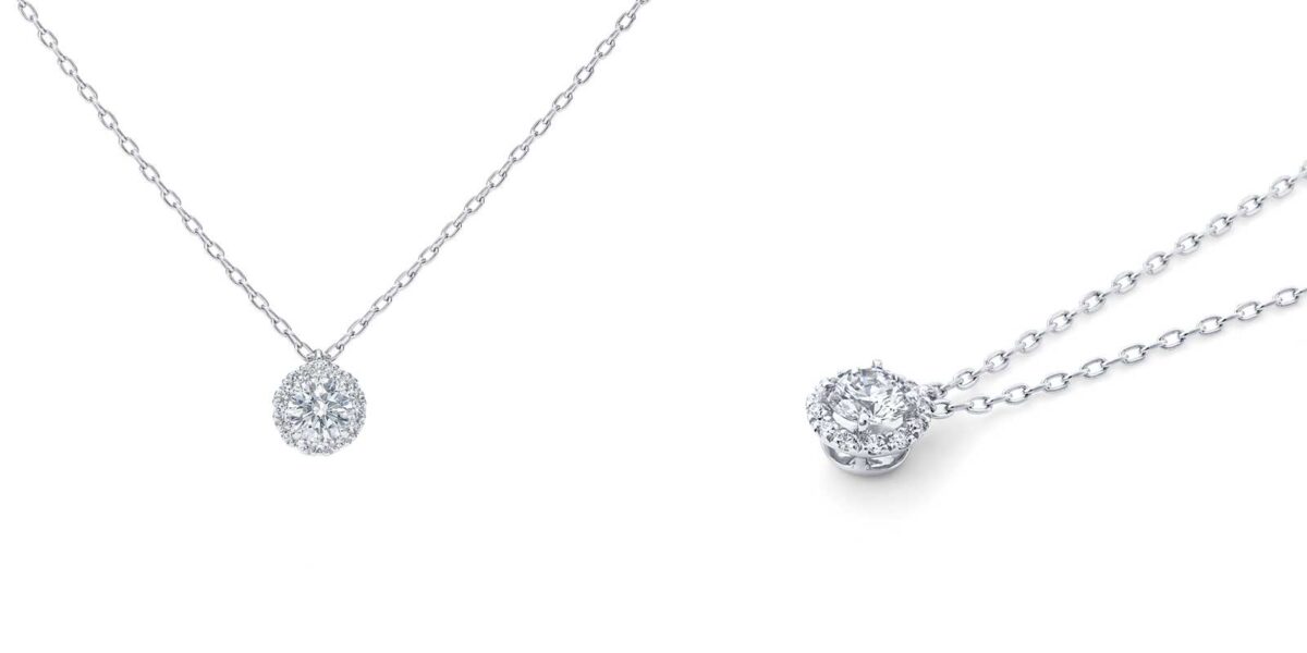 さらに、センターストーンを取り巻くようにメレダイヤモンドを緻密にセッティングしたデザインのエンゲージペンダントもラインナップに加わります。